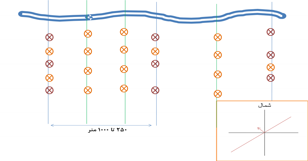 نمونه ای از یک نقشه شبکه حفاری تقاطعی مناسب اشکال منظم توسعه کانسنگ