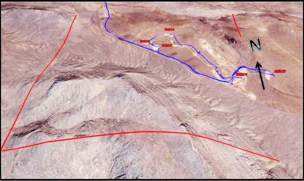 ذخیره قطعی محدوده های معدنی تامین کننده سنگ باریت مجموعه ماهان کاوان بحر آسمان بر اساس حجم رخنمون های سطحی و حفاری های انجام شده تا عمق 50 متری در محوطه های کارگاهی دارای پروانه بهره برداری به بیش از 500 هزار تن ذخیره قابل اثبات باریت با خلوص میانگین 2/4 می رسد. تعمیم عمق برداشت به اعماق پایین تر ذخیره احتمالی مجموعه را تا بیش از 1 میلیون تن اثبات مینماید. علاوه بر ماده معدنی خالص با کیفیت بالای 2/4 ، بر اساس نتایج حفاری های انجام شده بیش از 3 میلیون تن باریت مخلوط یا جیگ نیز در محدوده های تامین کننده سنگ مجموعه ماهان کاوان بحر آسمان قابل برداشت می باشد که بر اساس اندازه گیری های متعدد انجام شده میانگین 35 درصد بارهای مذکور نیز باریت خالص می باشد. در حال حاضر بارهای جیگ مورد نظر جهت برنامه های آتی مجموعه ذخیره و دپو میگردند. در برنامه های آتی مجموعه ماهان کاوان بحر آسمان، افزایش قابل توجه سقف تولید پودر میکرونیزه باریت از طریق طراحی و جانمایی سامانه های جدایش ثقلی در موقعیت های مختلف جهت پر عیار سازی و خالص سازی حجم بالای بارهای جیگ موجود در دستور کار قرار دارد. موقعیت سینه کارها و راه های دسترسی باز شده در یکی از محدوده های معدنی تامین کننده سنگ باریت ماهان کاوان بحر آسمان بر روی تصاویر ماهوار ای نمایش داده شده است. همچنین در ادامه نقشه های اکتشافی یکی از مجموعه های در اختیار ماهان کاوان بحر آسمان و تصاویر میدانی حجمی از رخنمون های باریت در سینه کارهای محوطه های کارگاهی برخی مجموعه ها نشان داده شده است.